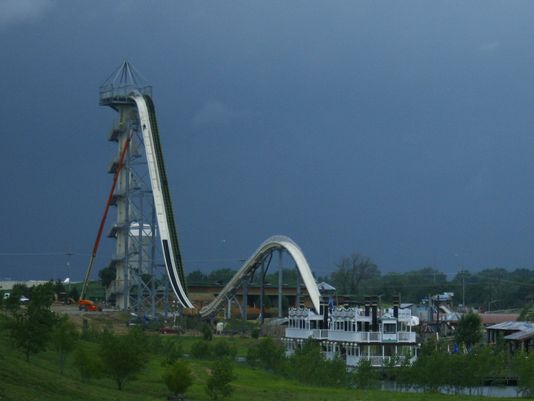 The slide’s 2014 opening was delayed a few times, though the operators did not provide reasons for the delays. Two media sneak preview days in 2014 were canceled because of problems with a conveyor system that hauls 100-pound rafts to the top of the slide.