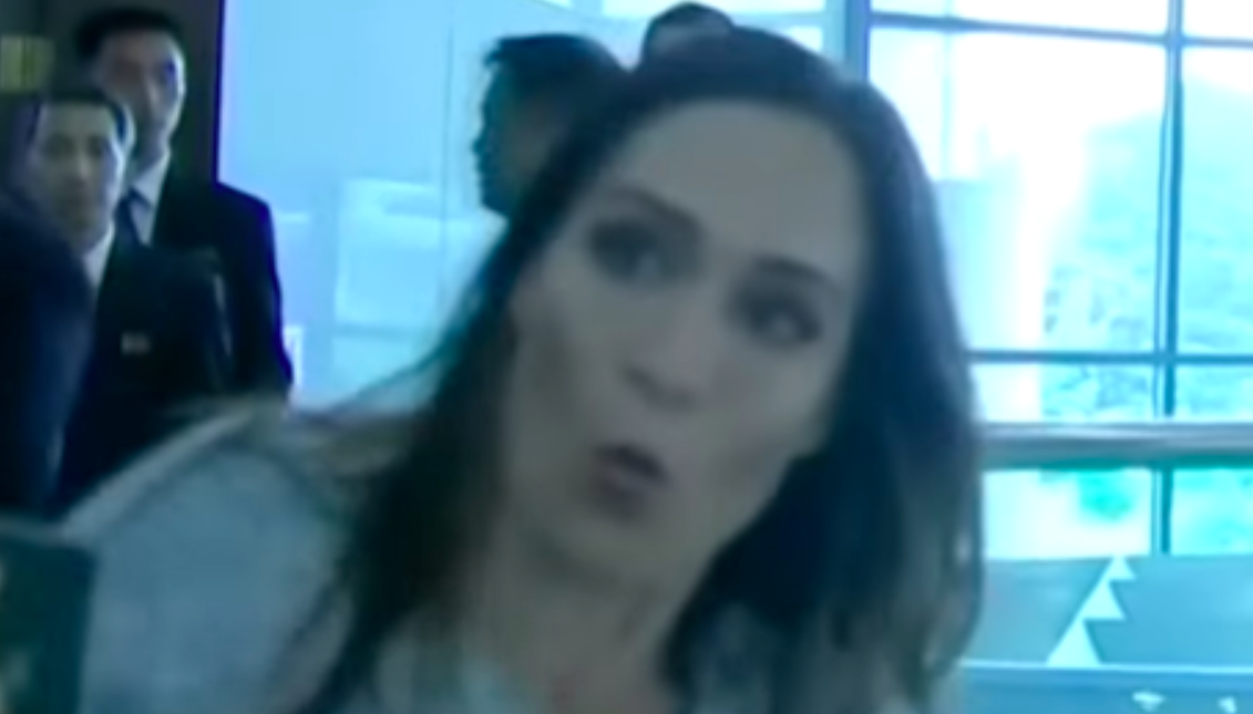 In a physical confrontation captured by South Korean news channel YTN, Grisham plants herself between the North Korean guards and a railing, forcing open a passage for the American and South Korean reporters to pass.