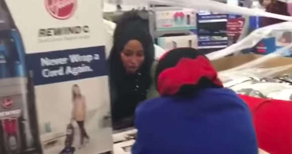 It shows two Somalian women fighting over a vacuum cleaner at a Walmart.