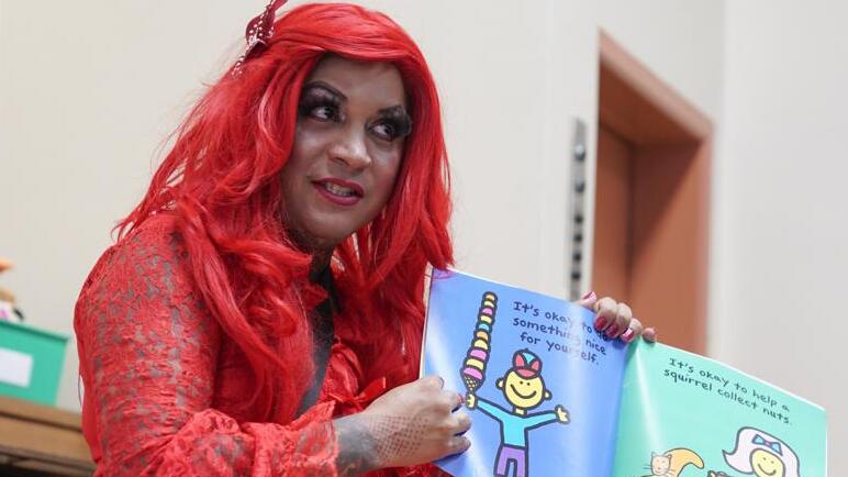 As part of Drag Queen Story Hour’s programming, drag queens read to children and their parents at libraries, bookstores, fairs, parks and other public spaces to celebrate reading “through the glamorous art of drag.”