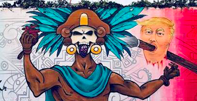 The mural also depicted the warrior holding a human heart — presumably, that of the president. The image recalls well-documented rituals of human sacrifice among the Aztecs, who are also thought to have eaten their victims.