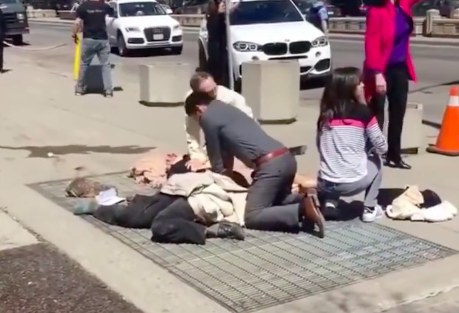 “He started going down on the sidewalk and crumbling down people one by one,” Shaker told CTV News Channel on Monday afternoon.
