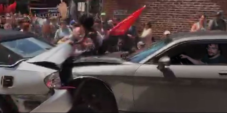A car rammed into violent antifa rioters during the Charlottesville event around 2:00 local time.