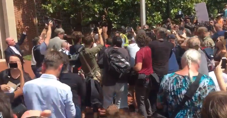 Jason Kessler, the organizer of the #UniteTheRight rally yesterday, tried to give a press conference this afternoon, and he was attacked by a mob.