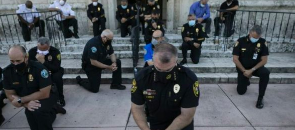 They are images that surprised and moved Americans: police officers taking a knee alongside protesters in the most widespread civil unrest to rock the nation in decades — and in doing so embracing an anti-racism gesture denounced by President Donald Trump.