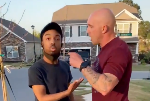 Another video, apparently from earlier in the day, shows a black woman in the guy’s yard telling the family to come out.