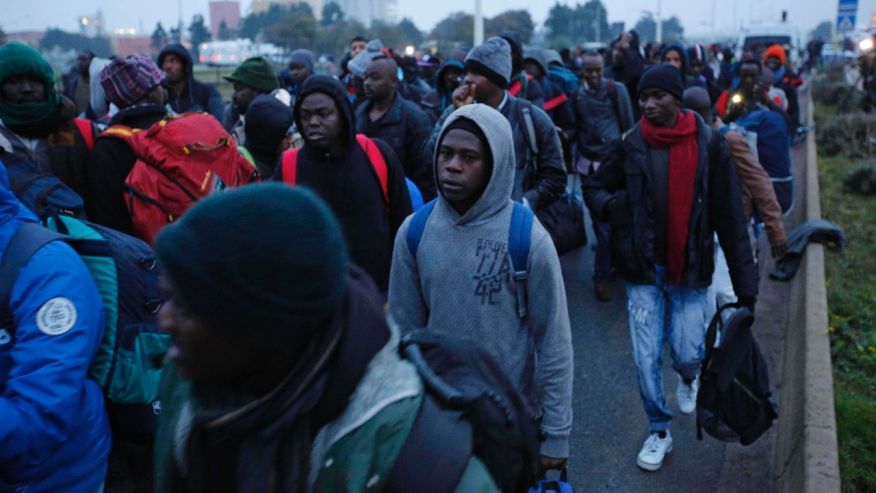 Lines of migrants with their lives in small bags walked to a registration center in the French port city of Calais Monday, the first day of the mass evacuation and destruction of the filthy camp they called home.