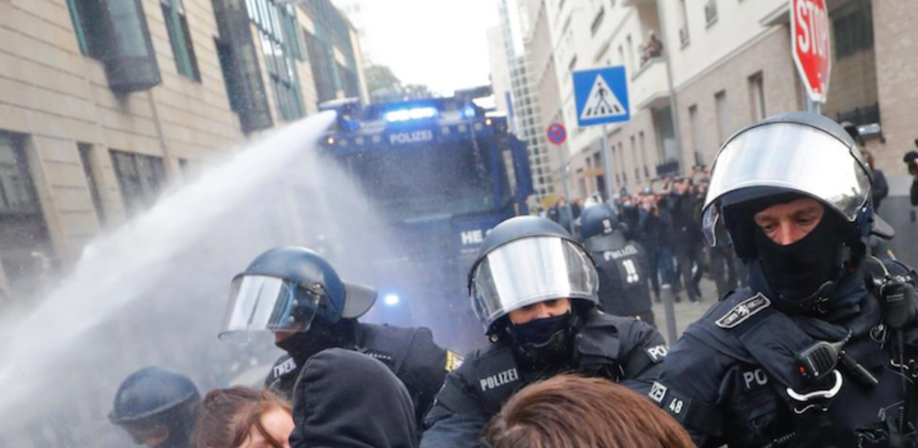 German police fired water cannon during an anti-lockdown rally in Frankfurt on Saturday and eventually broke up the gathering as rules like wearing masks and socially distancing were not observed.