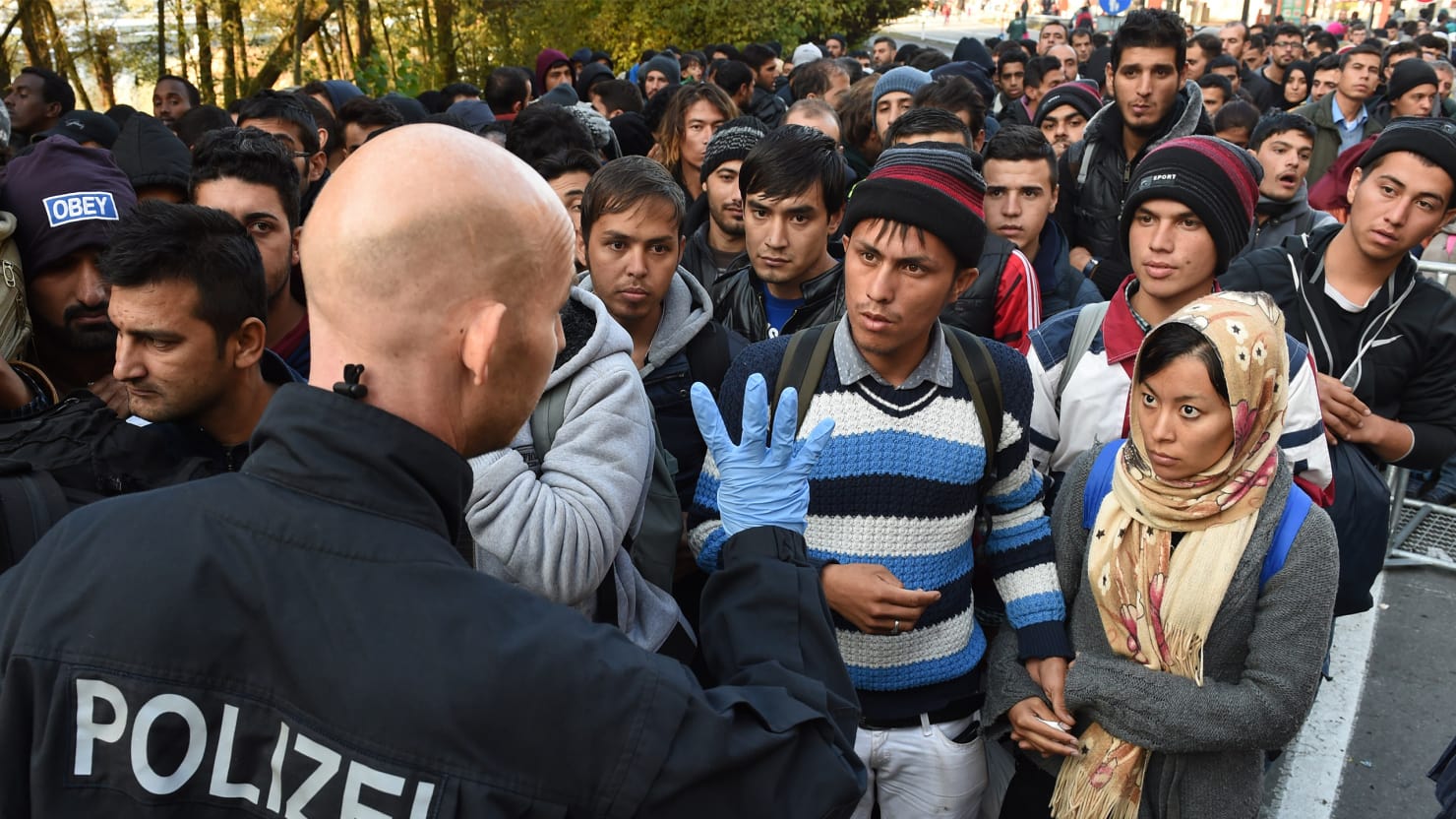 The figures are given for women with high (hoch), medium (mittel) and low (niedrig) levels of education, shown separately for Germans (black) and people of immigrant origin (blue).