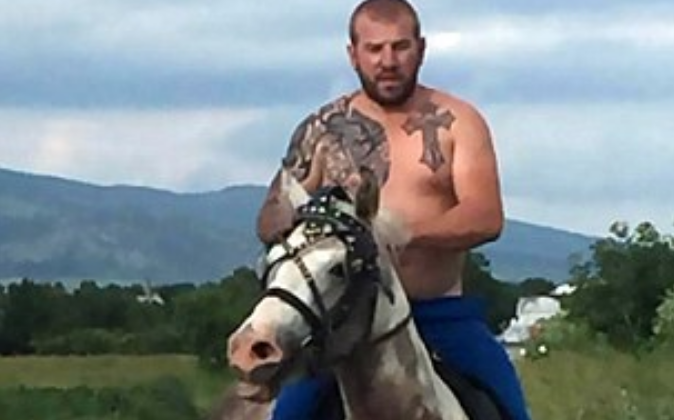 The former semi-professional wrestler was shown chasing terrified migrants through woodlands along with other armed vigilantes.