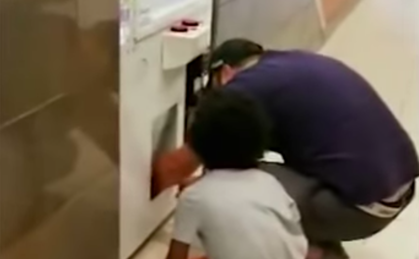 The video shows another child exclaiming, “Yes, it worked,” as the girl passes the prizes out of the machine, according to Boston news station WCVB-TV. The young girl is later seen poking her head out of the machine before sliding out.