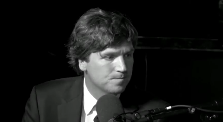 UPDATE: This is actually old. I wondered why it was the old “Free Speech” set. The uploader of this copy put the wrong date on it. It’s from about a year ago. I thought he was maybe bringing that back. That’s why it’s a good interview. It’s before he teamed up with the Jew Ezra Levant and started doing things like sticking dildos up his ass on TV. I don’t think Tucker would go on there now, after the dildo thing.