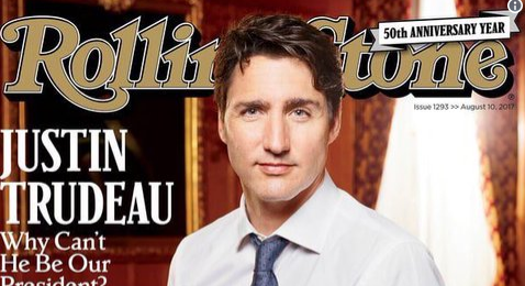 “Why Can’t He Be Our President?” screams the front page of the pop-culture magazine. Trudeau is pictured with his his shirtsleeves rolled up, earnestly staring at the camera while leaning against a dark wooden table.