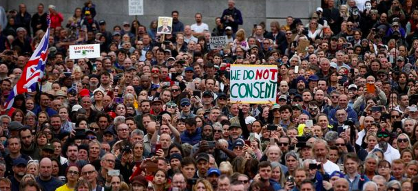 It lists its priorities as ‘no more lockdowns, no social distancing, no masks. No track and trace, no health passports. No mandatory vaccinations, no ‘new normal’. Restore all human rights that have been violated.’