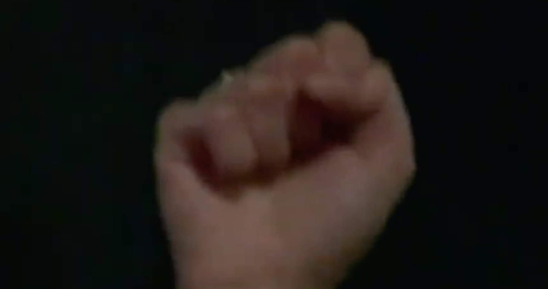 The guy holding the camera – ostensibly a Bloomberg employee – zooms all the way in on the fist.