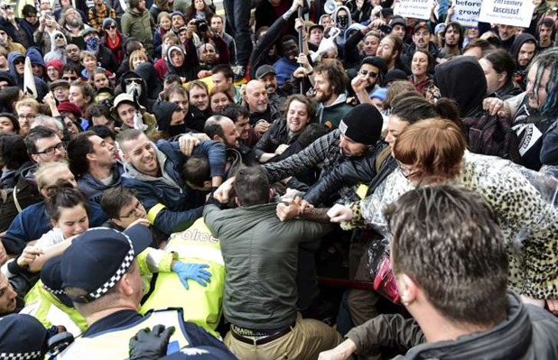 “Victoria Police respects the right of the community to express their views peacefully and lawfully, but will not tolerate those who break the law,” a statement said.