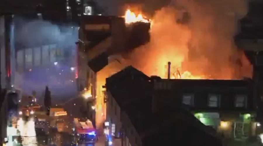 London’s fire department said floors 1-3 of the building, located “within the market,” as well as the roof were alight.
