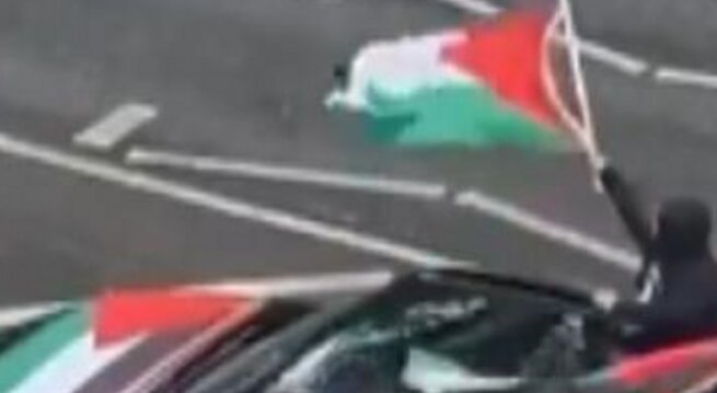 Footage showed a convoy of cars covered with Palestinian flags on Finchley Road, with passengers heard using offensive language and issuing threats against Jews.