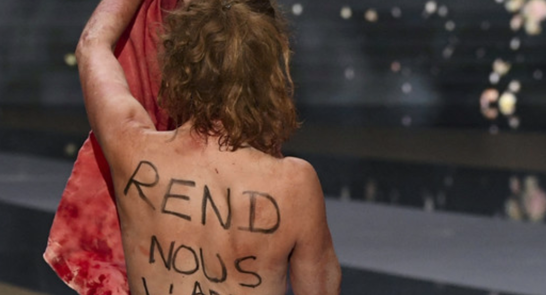 Actress Corinne Masiero disrobed on stage during a French awards ceremony, exposing the audience to her anger over the government’s closure of cinemas and other cultural institutions amid the Covid-19 crisis.