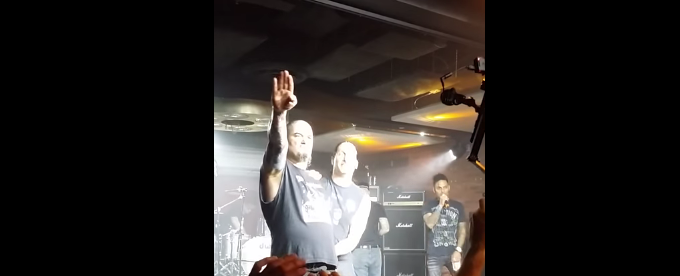 On January 22 in Los Angeles, at this year’s Dimebash, a concert devoted to murdered Pantera guitarist Dimebag Darrell, Phil was filmed Sieg Heiling the audience and screaming “White Power.”