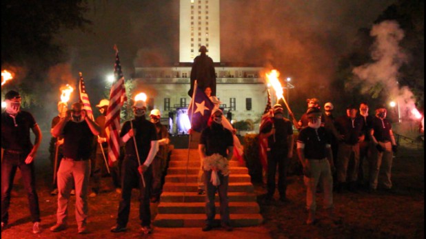 They picked up the pace and arrived at their selected locale, the university’s George Washington statue, where they held a nice, fashy torchlight vigil and their leader, Thomas Ryan, gave a stirring speech.