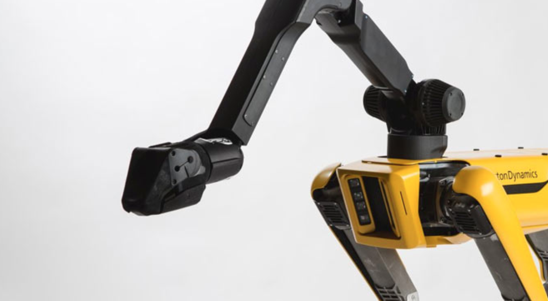 The robot dog, made by Boston Dynamics, can climb stairs, search and examine potentially dangerous areas, and carry a small cargo if needed. It can be equipped with optional gear to perform other tasks such as opening doors, recovering objects, and take measurements.