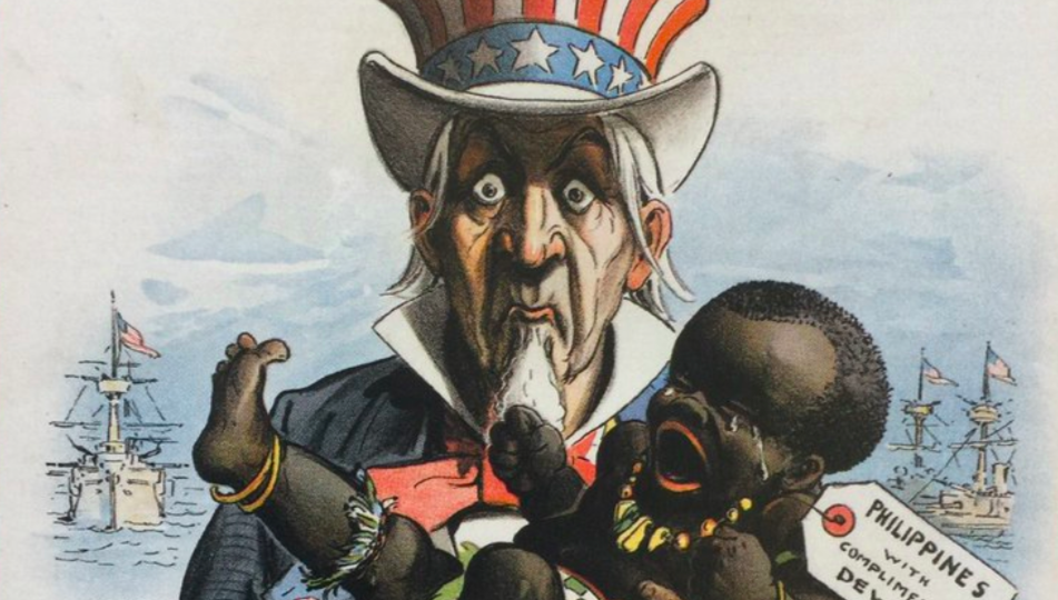 Look at this political cartoon from 1898, portraying the colony of the Philippines that was transferred to the US from Spain at the end of the Spanish-American war as a orphaned negro infant crying for food.