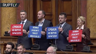 Federica Mogherini’s 25-minute address to Serbia’s parliament was often overpowered as some ultranationalist lawmakers banged on benches with their hands and chanted “Serbia, Russia, we don’t need the Union!” Banners reading “Serbia doesn’t trust Brussels” dotted the room.
