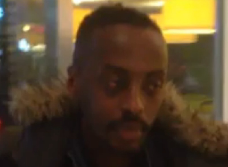 The same Somali is seen in the video below, trying to rob a sleeping man at McDonald’s, but is stopped by the intervention of a 67-year-old woman, who forces him out of the restaurant.
