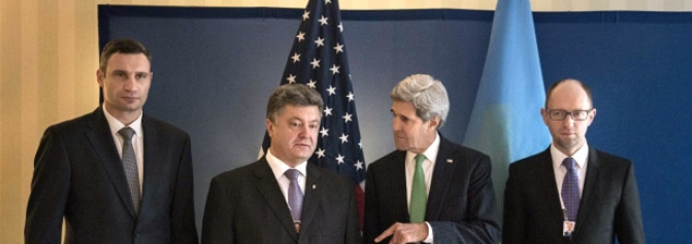 These four politicians have two things in Common: (1) They all wield tremendous influence in the new Jew-controlled Ukraine. (2) They are ALL Jews. Far right, Ukraine’s new Prime Minister, Arsiniy Yatsenuk, a Jew (see below); next to him, American Secretary of State John Kerry, who recently discovered his “Jewish roots“; left of Kerry, Ukraine’s recently elected President, Petro Poroshenko, another Jew (see below); far left, Vitali Klitschko, Jewish boxer politician whose father served in the Bolshevik “Red” army.