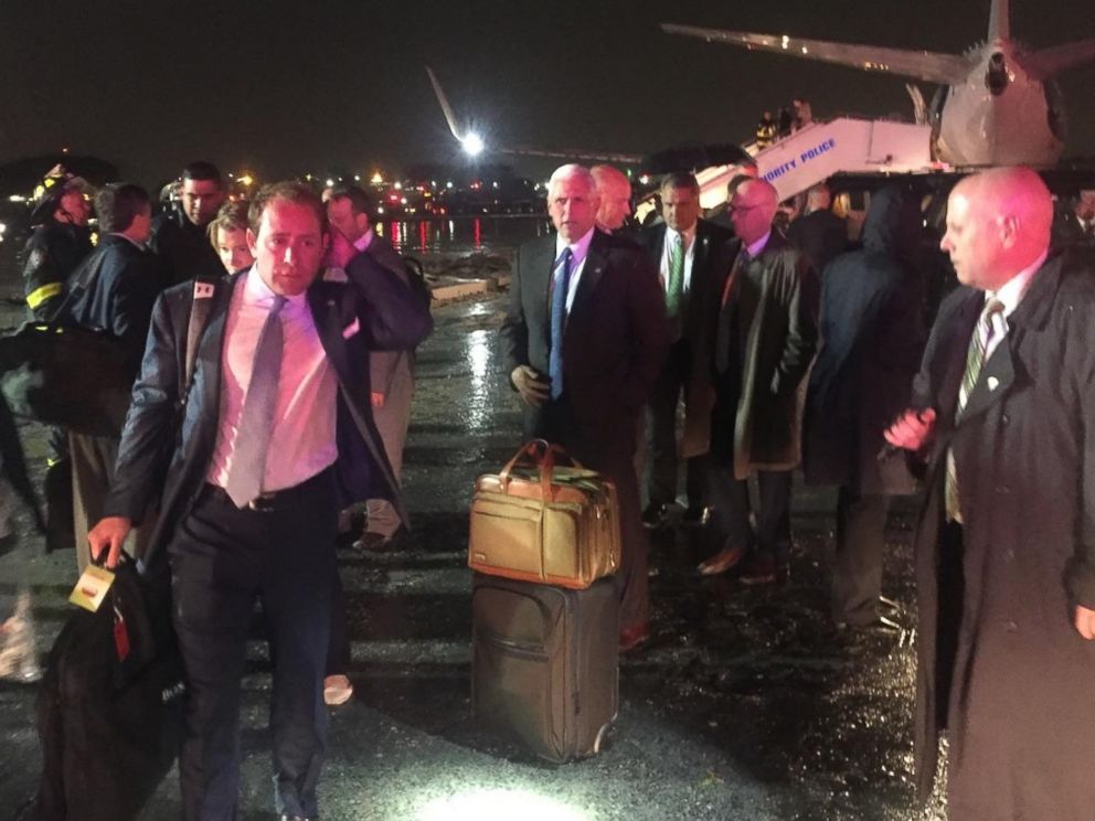 A charter aircraft carrying Donald Trump’s running mate Mike Pence slid off the runway Thursday night while landing at LaGuardia Airport in the New York City borough of Queens, prompting a temporary closure of the entire airport.