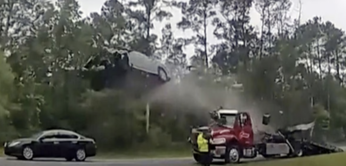 I’m usually appalled by the behavior of stupid bitch drivers, but a 21-year-old female in Georgia has truly impressed me when she saw the opportunity of a truck’s trailer to catch some serious air.